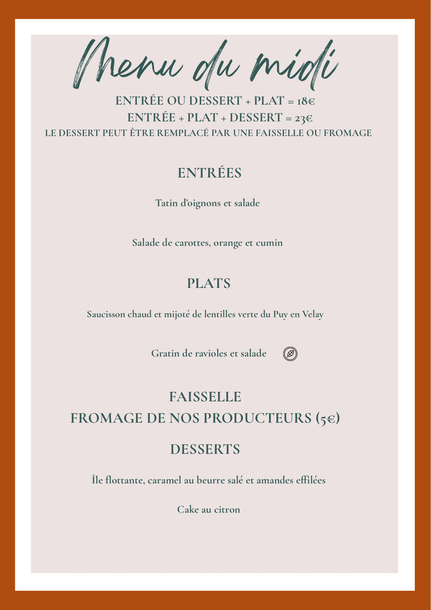 Lundi Mardi fermé